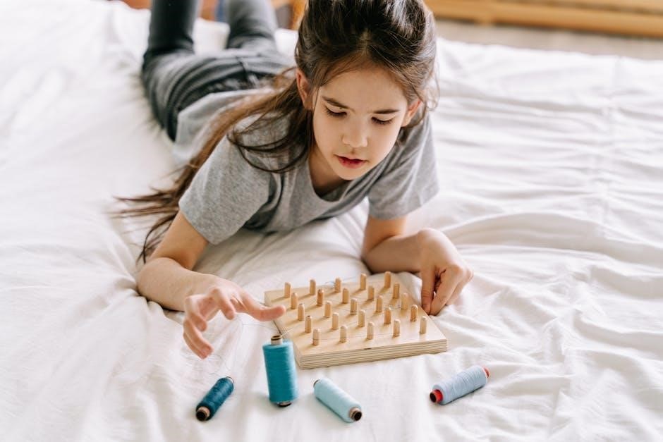 Logic puzzles designed for children often feature simple‚ visually appealing designs that cater to their developing cognitive skills. These puzzles‚ available in PDF formats‚ include mazes‚ matching games‚ and basic pattern sequences. They aim to enhance problem-solving abilities‚ memory‚ and critical thinking in a fun‚ engaging way. Age-appropriate challenges‚ such as identifying shapes or sorting objects‚ help build foundational logic skills. Parents and educators use these tools to foster a love for learning and improve concentration in young minds effectively.
